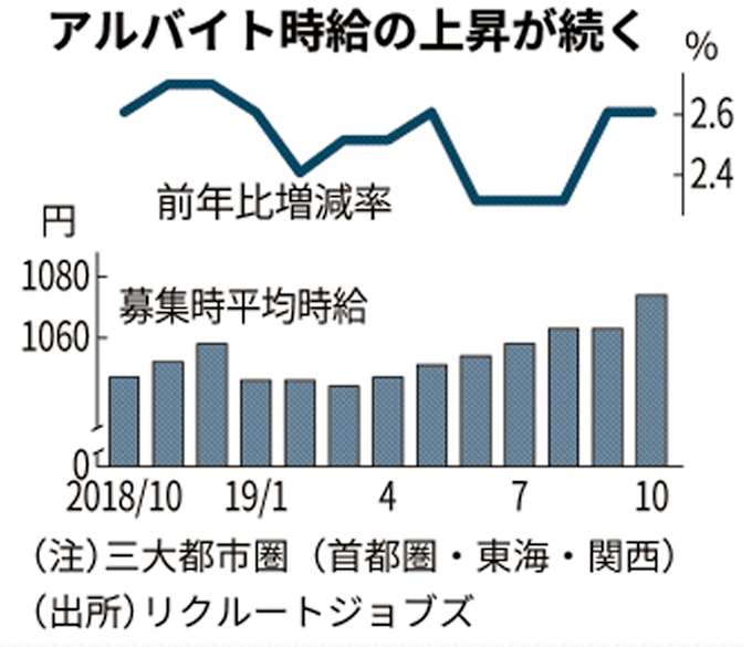 バイト時給 過去最高の1074円に 人手不足 最低賃金引き上げで Nippon Com